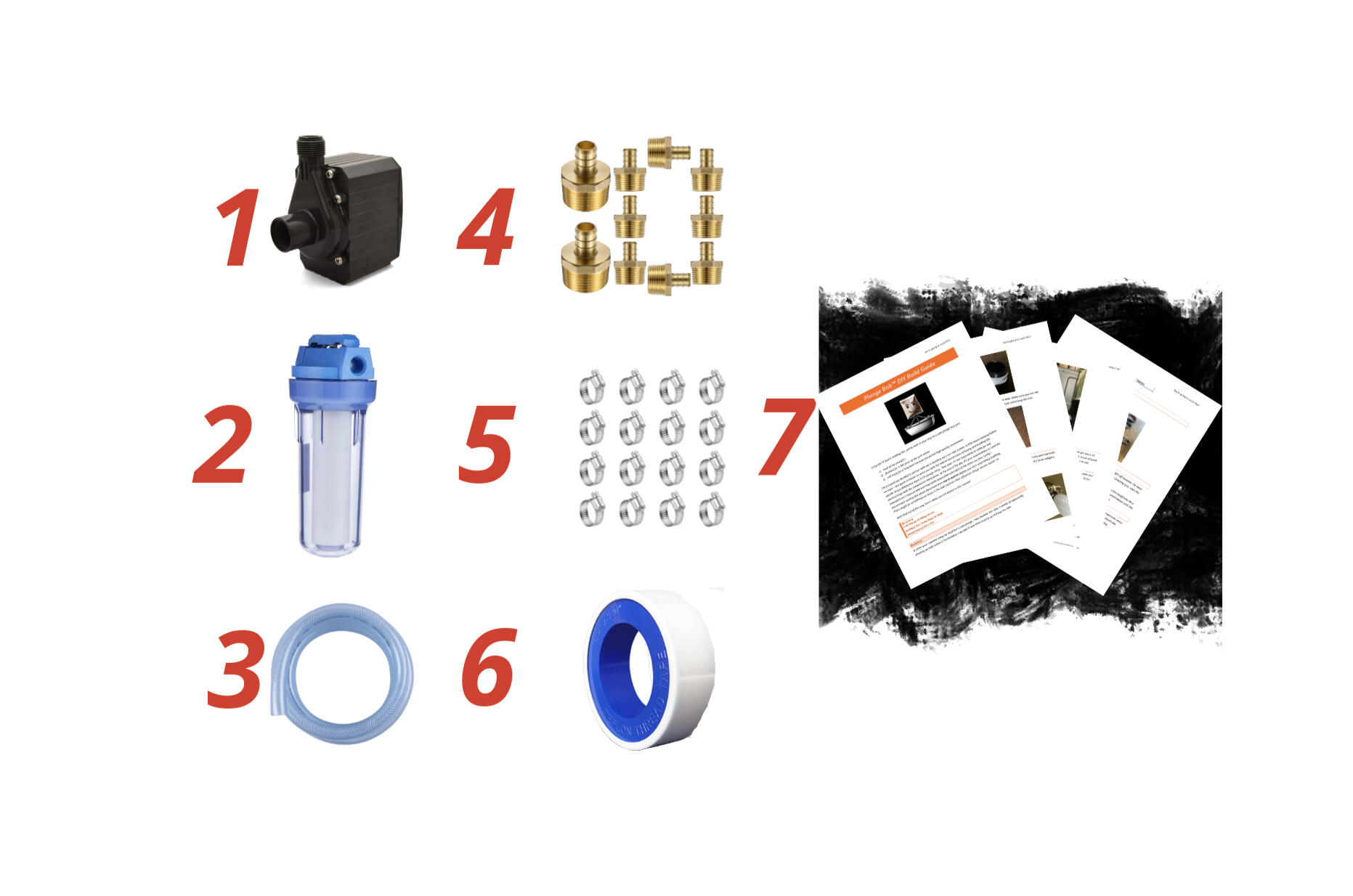 We'll ship you the pump, filter, cut-to-spec tubing, adaptors, and our step-by-step assembly guide